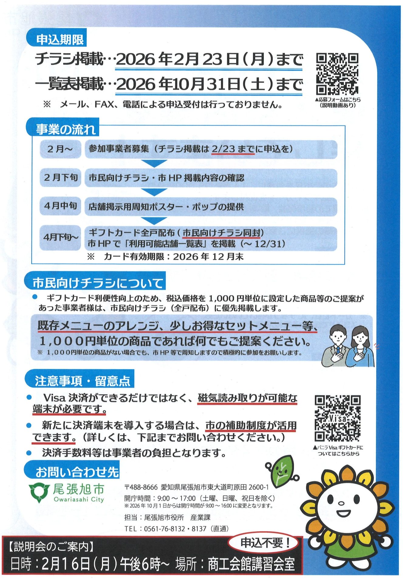つきましては、市内店舗での利用促進および地域経済の活性化を図るため、このバニラVISAギフトカードの使用可能店舗の市ホームページ店舗一覧や市民向けチラシの掲載の登録にご協力ください。